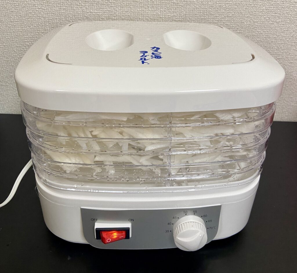 フードドライヤーとは、温風にて野菜などを乾燥させて乾物を作成でき、何日も天気を気にしながら天日干しなどといったわずらわしさをスキップできる魔法のアイテムです。